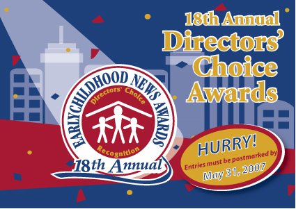 Entries are evaluated by a distinguished panel of five early childhood experts and child care directors selected by the editorial staff of Earlychildhood NEWS. Please check back again soon for information about our 2007 Directors’ Choice judges.